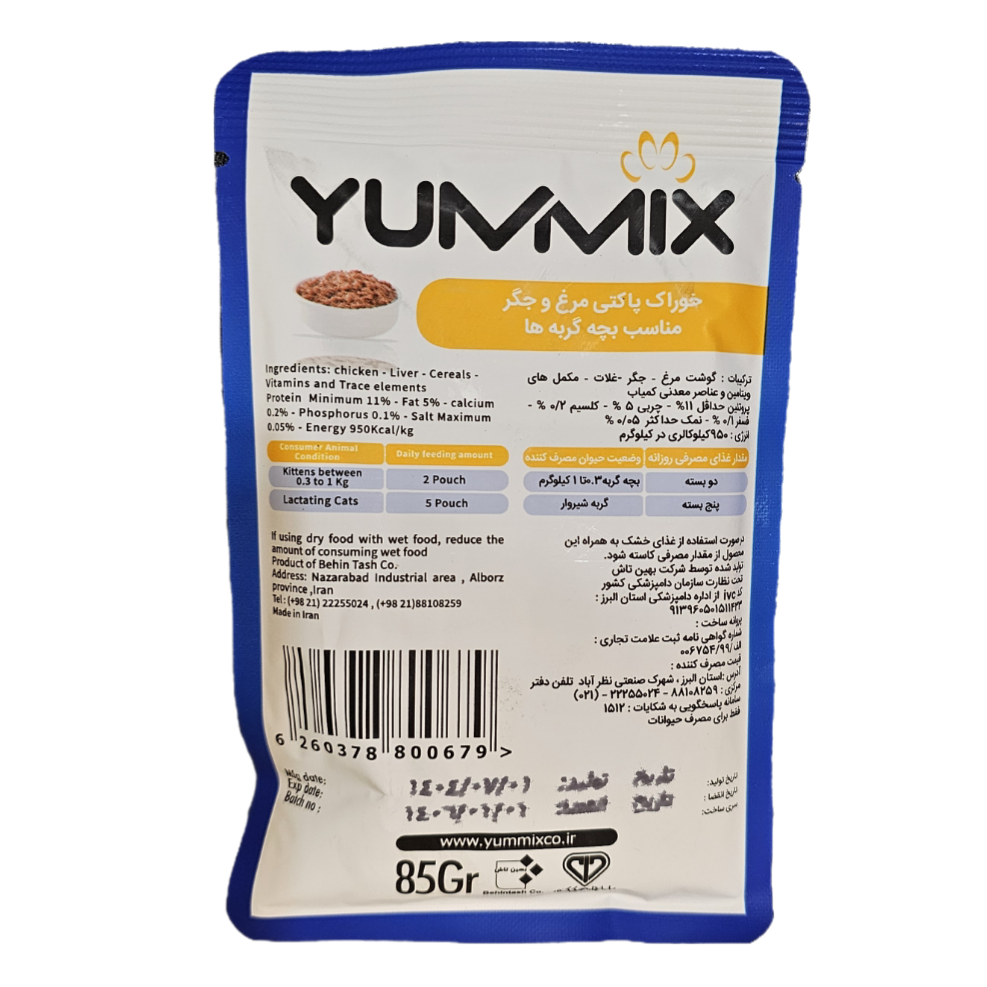 پوچ بچه گربه یامیکس مدل پته با طعم جگر و مرغ، یک غذای مرطوب و کامل است که به طور خاص برای پاسخگویی به نیازهای تغذیهای بچه گربههای در حال رشد فرموله شده است. این محصول با وزن 85 گرم، گزینهای مناسب برای یک وعده غذایی لذیذ و مغذی برای پت دلبند شماست.