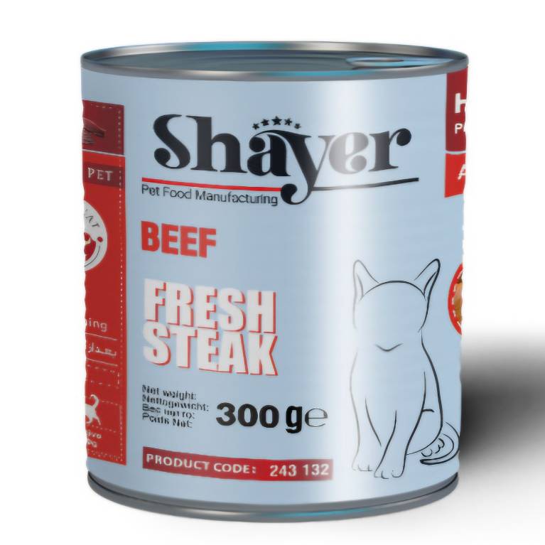 کنسرو استیک بیف 300 گرمی گربه شایر shayer