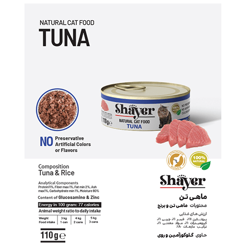 کنسرو ماهی نچرال 110 گرمی گربه shayer