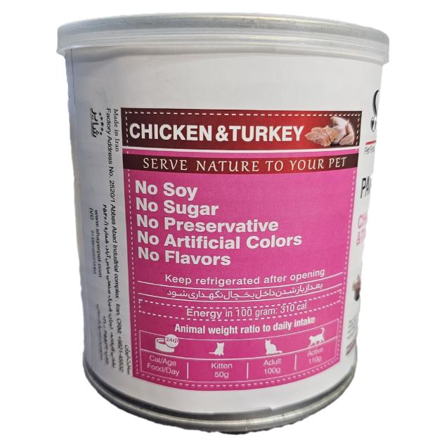 کنسرو پته مرغ و بوقلمون 800 گرمی گربه shayer