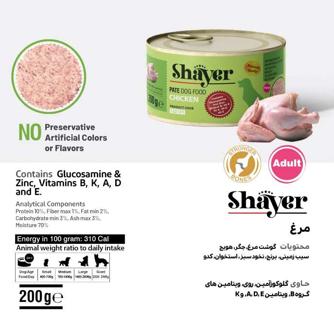 کنسرو پته مرغ 200 گرمی سگ shayer